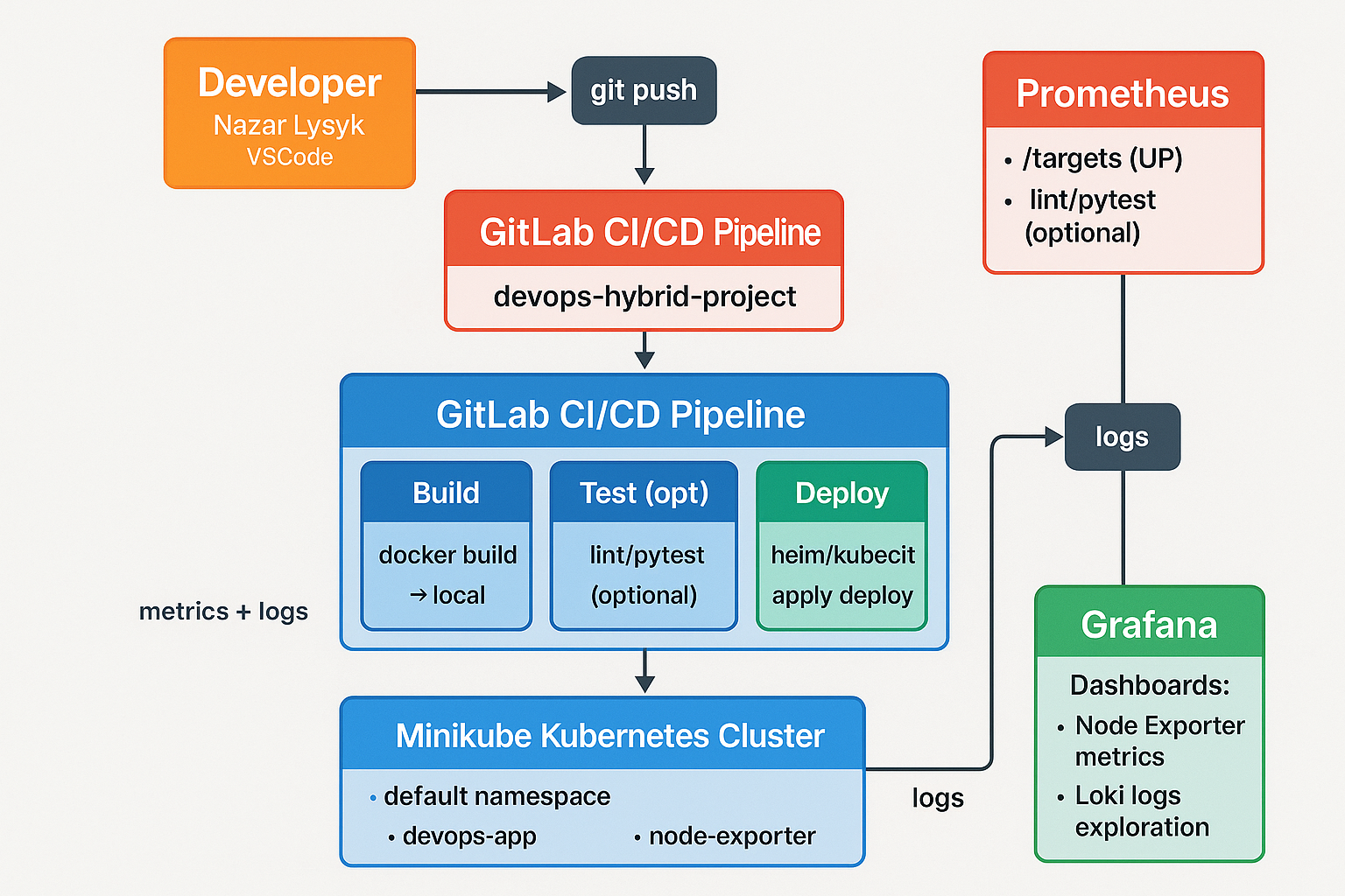 I’m a DevOps Engineer focused on AWS, Infrastructure as Code, and automation. I enjoy turning small ideas into production-like environments with CI/CD pipelines, Kubernetes, and observability. Over the last months I’ve been building hands-on projects around AWS, Terraform, Docker, Kubernetes, GitLab/GitHub CI, Prometheus and Grafana. I like understanding every step of the delivery path: from local development, through pipelines, to a monitored running application.